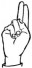На ћирилици написано САВА ВУЈАЧИЋ састоји се из 11 слова [?]. Исписано ћириличном једноручном азбуком за глувонеме: